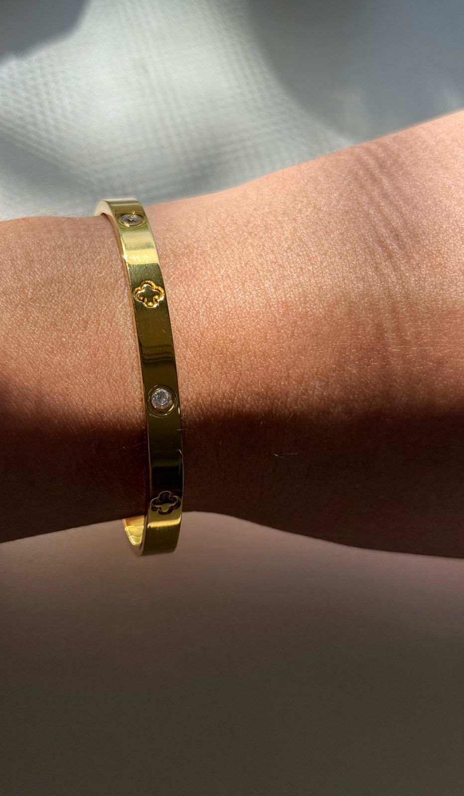 Esclava trebol en acero dorado