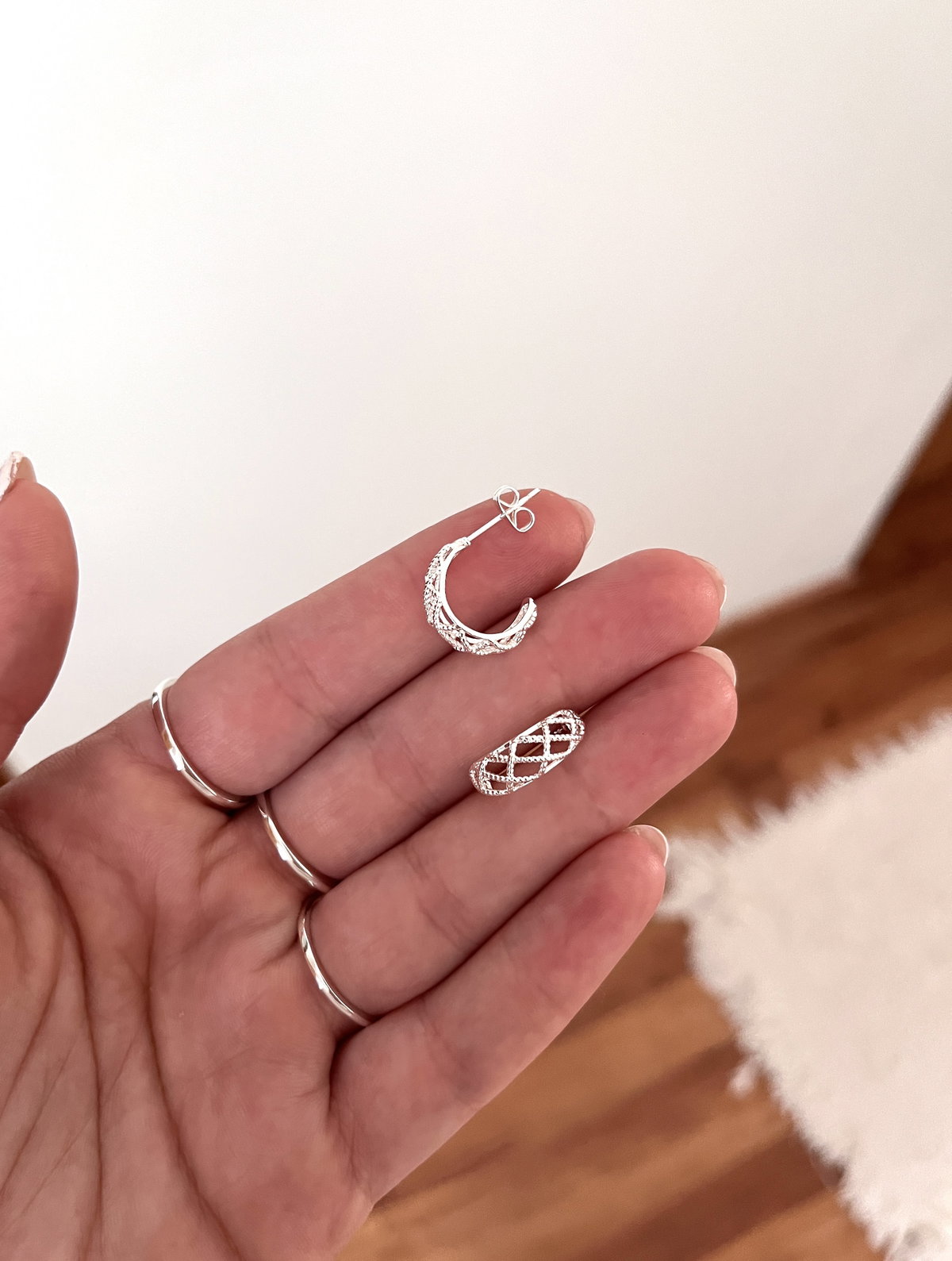 Semi argollitas Caladas en acero blanco