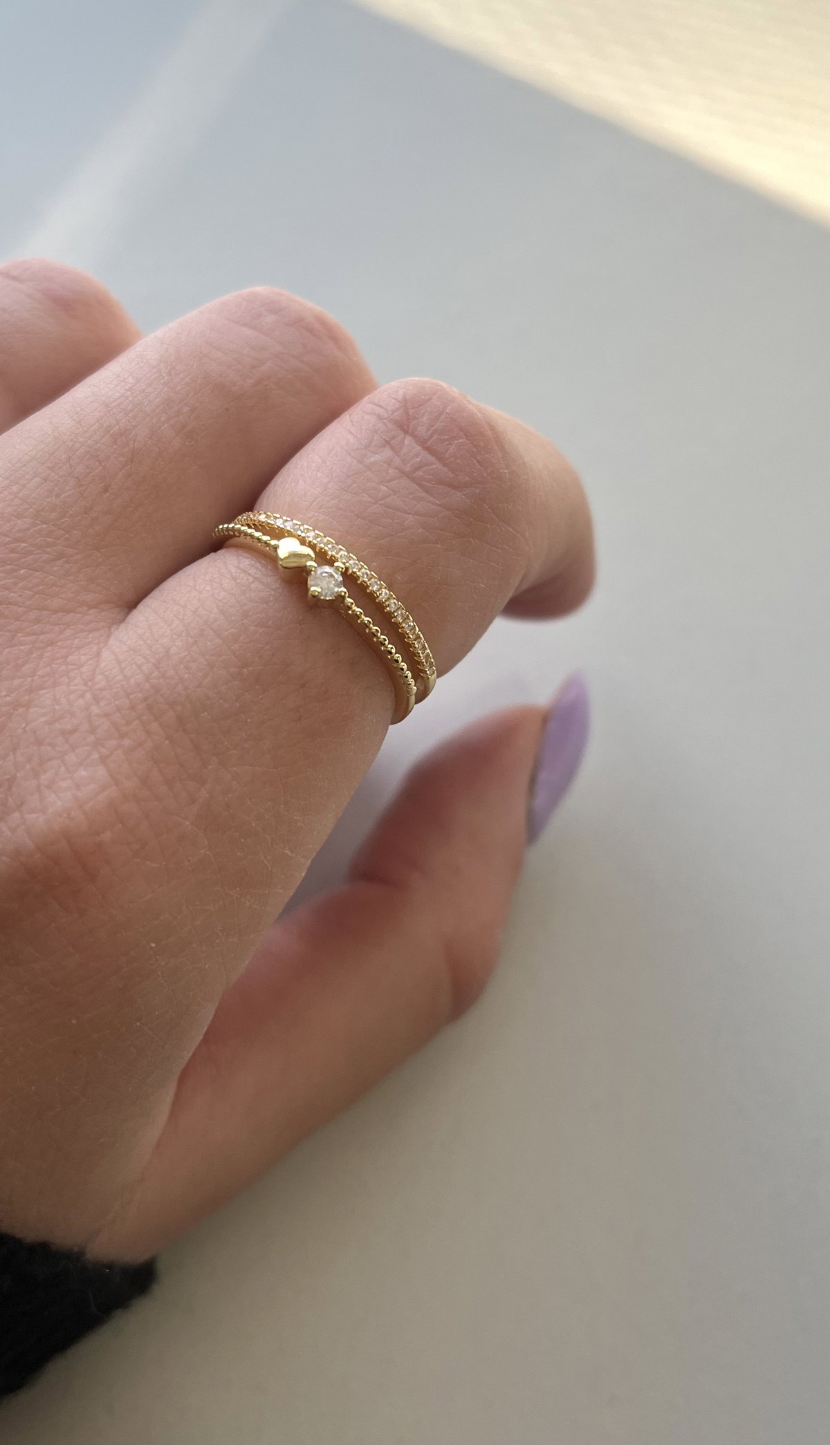 Anillo doble corazón cubic en acero dorado (Regulable)
